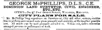 McPhillips patented the McPhillips Map, which became known by the plural McPhillips' Map when McPhillips Bros. was formed. On a couple of occasions he took out ads in the classified section reminding printers that the work was his, don't reprint it in whole or in part.