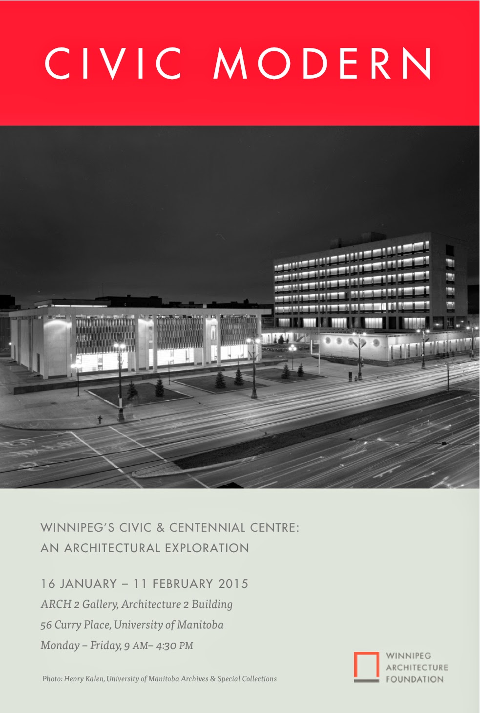 Curated by Jeffrey Thorsteinson of the Winnipeg Architecture Foundation, Civic Modern: Winnipeg’s Civic and Centennial Centre: An Architectural Exploration examines the social, political and architectural history of Winnipeg's Civic and Centennial Centres as they reach their fiftieth anniversary.